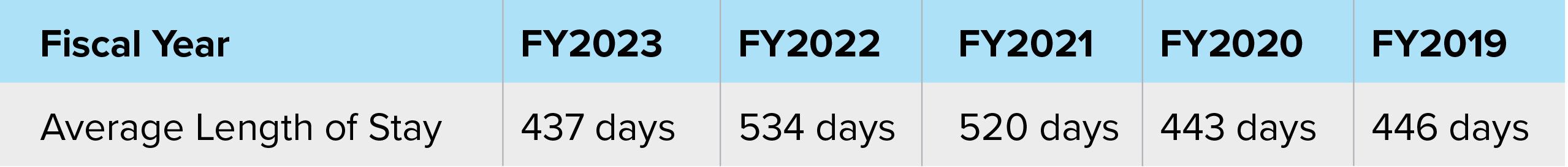 Lowest Average Length of Stay in the Last Five Fiscal Years
