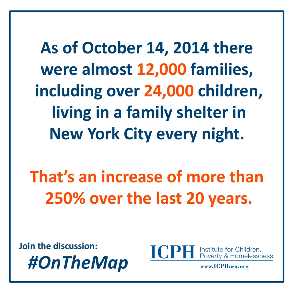 As of October 14, 2014 there were almost 12,000 families, including over 24,000 children, living in a family shelter in New York City every night.