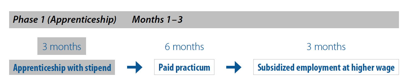 Those entering the adult basic education track will participate in a daily schedule similar to a traditional school setting, with students receiving instruction in each of the five subject areas five days a week. Given the greater educational needs of these students, completion of this phase of the program will take at least nine months.