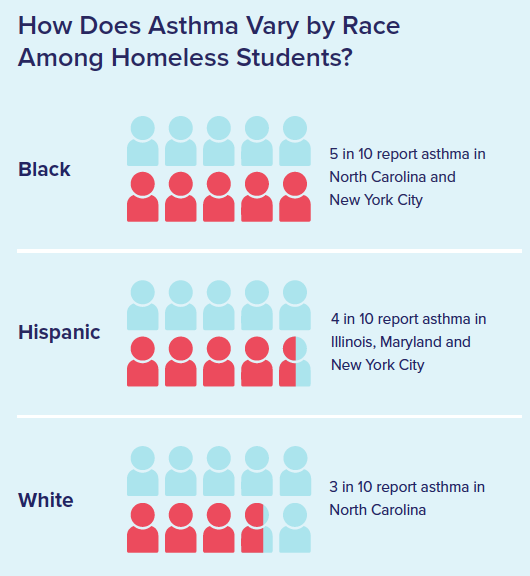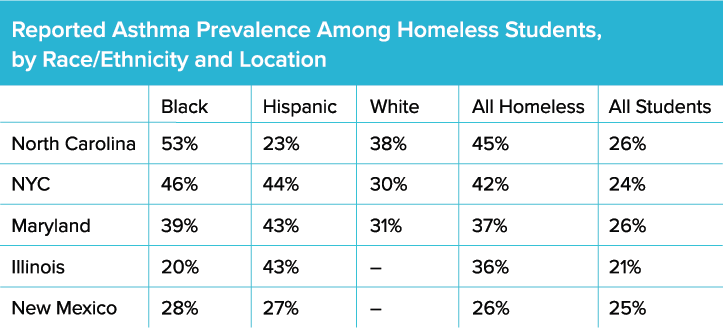 - Homeless students report higher rates of asthma compared with their housed classmates across all racial/ethnic groups and locations.