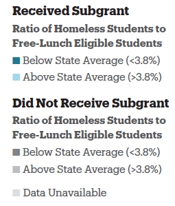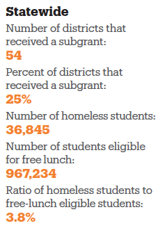 - In Georgia, 44% of school districts had a ratio of homeless students to free-lunch eligible students smaller than the statewide average (3.8%), including 19 that received subgrants.