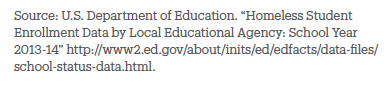 Source: U.S. Department of Education. “Homeless Student Enrollment Data by Local Educational Agency: School Year 2013-14” http://www2.ed.gov/about/inits/ed/edfacts/datafiles/school-status-data.html.