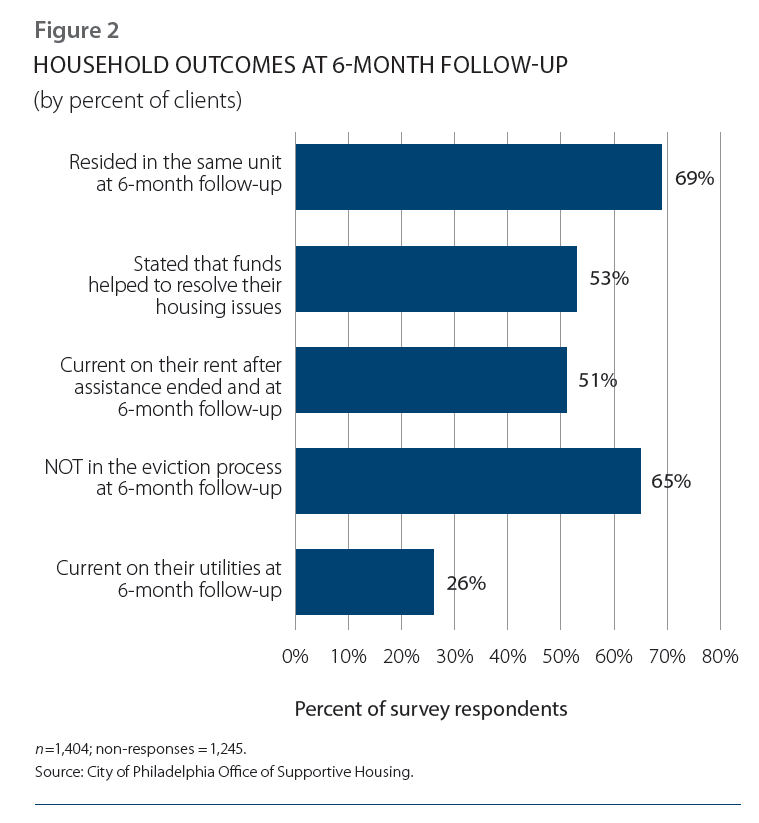 What is unknown for both individuals and families who exited without subsidies is whether the assistance was sufficient to stabilize households or if additional funds were needed but unavailable. On one hand, the high percentage in both groups who did not receive subsidies could reflect the efficiency with which the program was targeted to households that had specific income ranges and were in housing that was affordable to them at their current, rather than expected, income levels. On the other hand, the disparity between the proportion of single households exiting to housing without subsidies and that of families doing so may also reflect the different barriers facing each group. Affordable housing may be easier to find for one person than for a family of two or three. Families must also shoulder additional expenses for child care, clothing, food, transportation, and other necessities for children. Only more detailed and longer-term data that distinguishes between families and individuals can answer the many remaining questions about the effectiveness of the program; nevertheless, the availability of affordable housing and the existence of longer-term housing subsidies in Philadelphia are worth noting in the overall evaluation of the program.