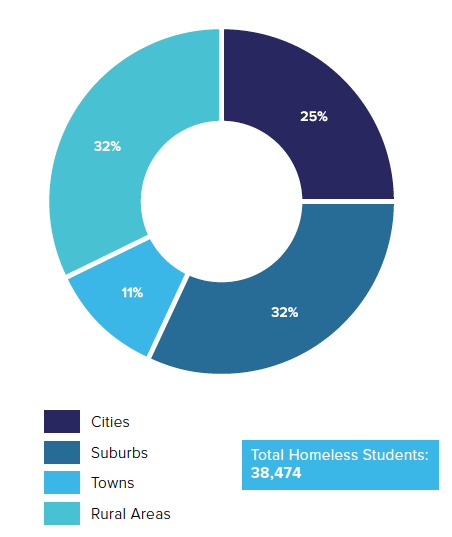 - That year, there were 38,474 homeless students in the state, making up 2.2% of total enrollment.