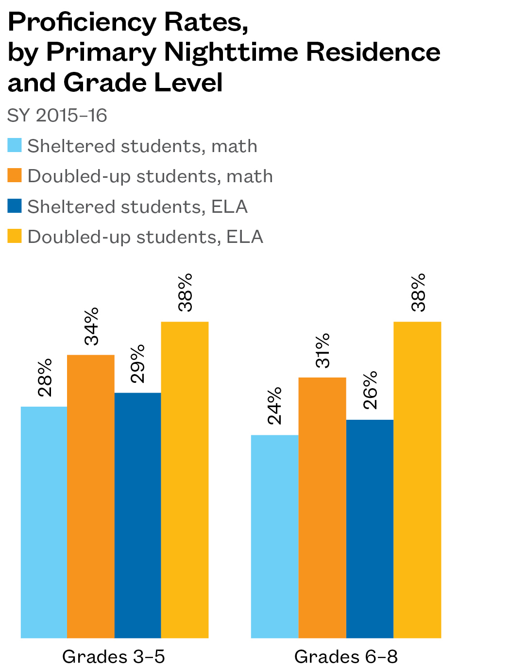 Proficiency Rates, by Primary Nighttime Residence and Grade Level