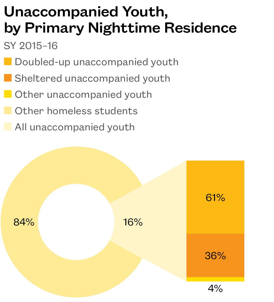 The “Other unaccompanied youth” category includes students who lived in a hotel or motel or were unsheltered.
