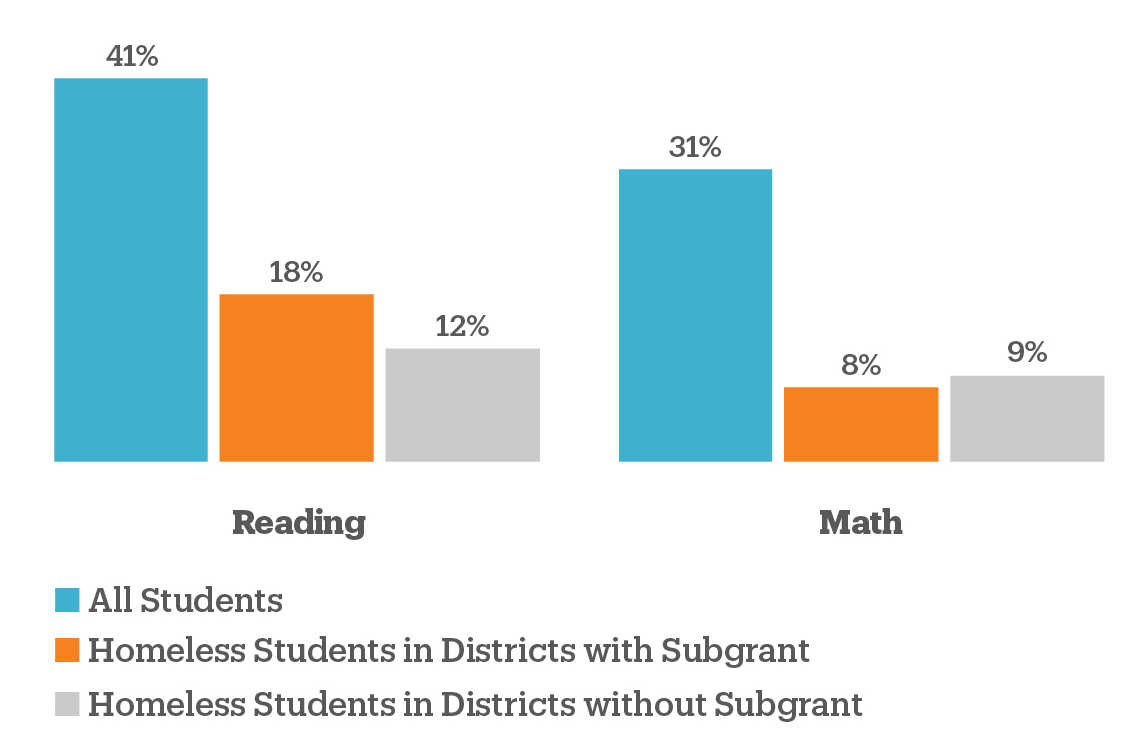 - Statewide: On average, homeless students were proficient in reading at a rate 23–29 percentage points lower than all students. In math, homeless students were proficient at rates 22–23 percentage points lower than all students.