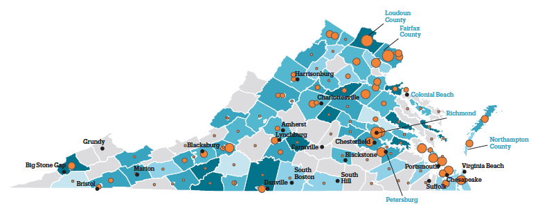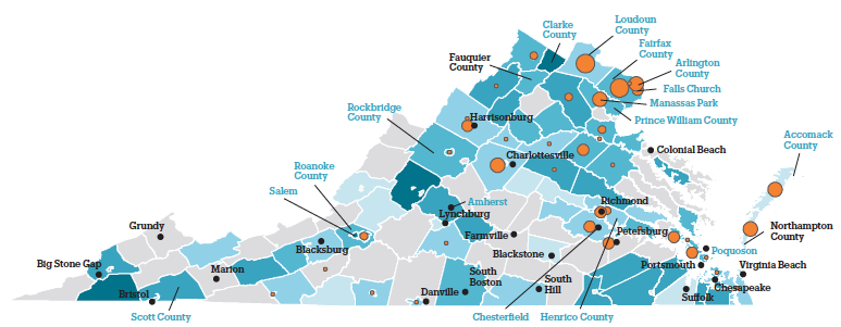 - Three school districts had over 1,000 homeless students (Fairfax County, Loudoun County, and Richmond City). In three school districts, over 10% of students were homeless (Colonial Beach, Northampton County, and Petersburg City).