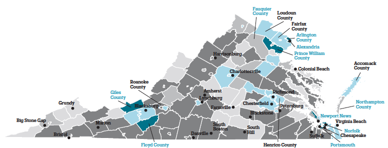 - Homelessness was disproportionately seen in Virginia’s urban areas. Despite enrolling only 22% of the total student population in the state, these districts accounted for one-third of all homeless students.