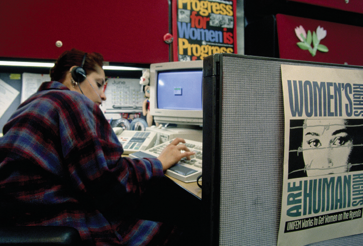 Back cover: A woman and her sons, fleeing domestic violence, carry their possessions from their home.