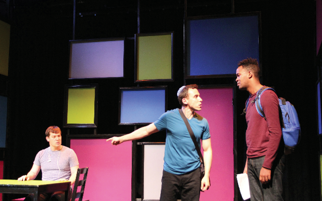 Actors perform in Premiere, a play written by Writopia student Markus. Markus was inspired to write about cultural tensions by the diversity of his own school, and incorporated his love of classical music into the play.