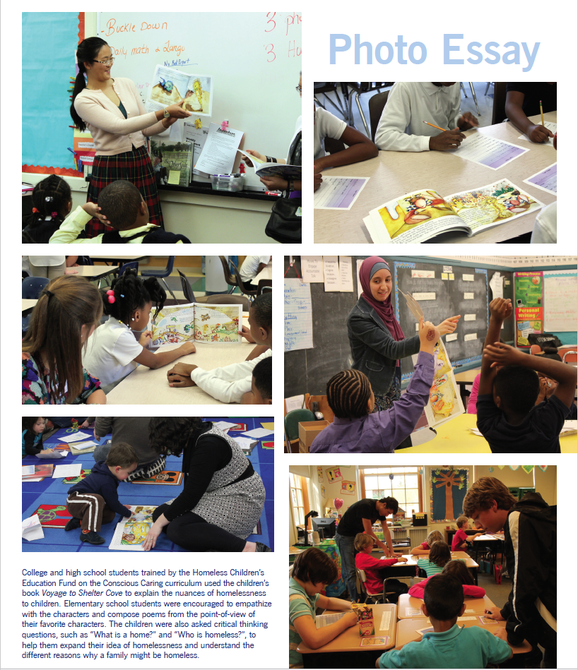 The articles focusing on children include our feature on the New York City–based Writopia Lab, a national community of creative writers who work to foster literacy and develop critical-thinking skills in children and teens of all backgrounds. A representative of the Homeless Children’s Education Fund, based in Pittsburgh, has contributed this issue’s article on the organization’s innovative “Conscious Caring” curriculum, created to teach elementary school students about the plight of people—often children—who face homelessness. One person with firsthand experience in that realm is Nikki Johnson-Huston, who is currently a highly successful tax lawyer in Philadelphia—but was once a homeless nine-year-old in California who had little to call her own except her dreams for a better life. Nikki has written a candid, moving remembrance of her ordeal and how it has affected her. Based on her own trials, she stresses the need to instill a sense of possibility in poor and homeless children, as part of their overall education. For those of us in either the policy or program community, the final article is a reminder that learning is a lifelong process. The Massachusetts-based COMPASS Community Collaborative provides a poignant example of how giving homeless adults the education and job skills they need to live independent lives helps them provide for their families in the long run.