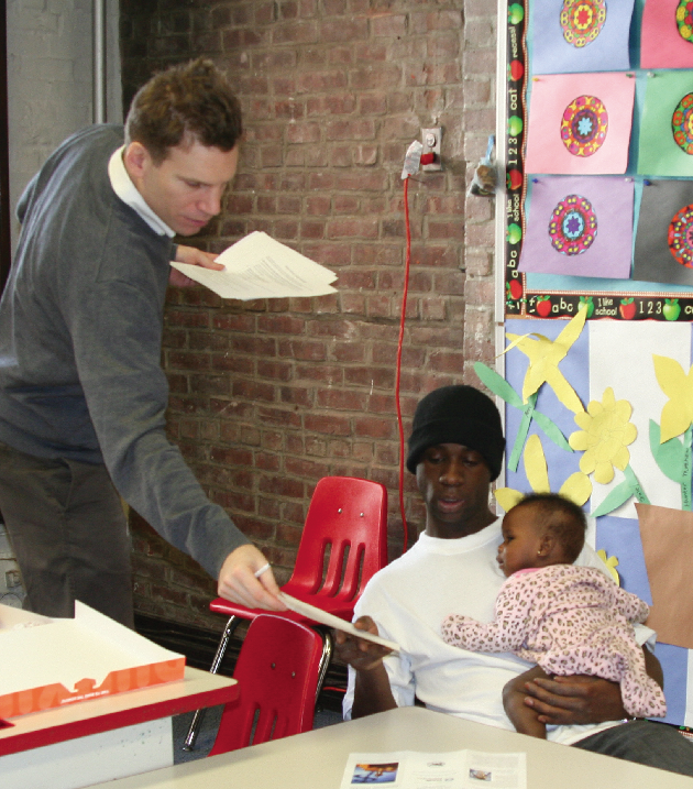 His weekly financial literacy course for parents at a Bronx homeless shelter is going to start in a few minutes. He places brochures announcing this week’s topic, payroll and income taxes, face-up in front of each chair at the table. He prepares for a full house.