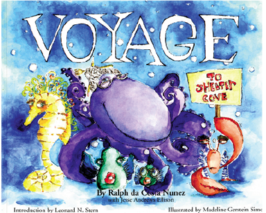 Voyage to Shelter Cove, by Ralph da Costa Nunez with Jesse Andrews Ellison; illustrations by Madeline Gerstein Simon (*White Tiger Press, 2006). In an undersea tale that addresses both homelessness and environmental concerns, we meet Serena the seahorse and Herman the hermit crab. The two journey with friends to a place called Shelter Cove when their home reef is threatened by developers. In Shelter Cove, each friend sets and pursues a goal for the future. Voyage to Shelter Cove introduces us to whimsical sea creatures in a fantastical ocean setting. An activity book is available.
