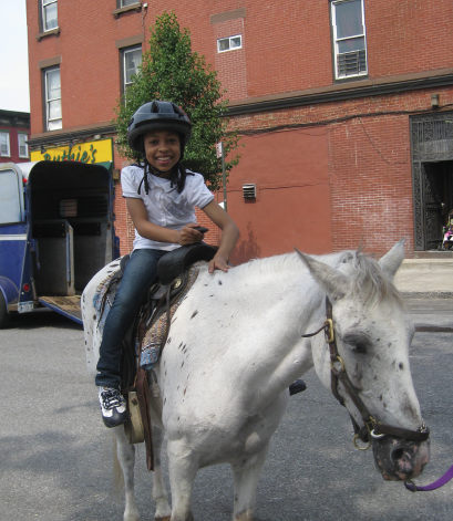 A girl rides a horse as part of the Emerson Davis program of New York’s Institute for Community Living.