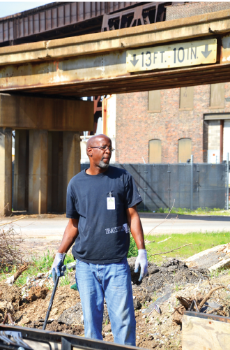 A man participates in St. Patrick Center’s Building Employment Skills for Tomorrow (BEST) on-the-job-training program for people experiencing homelessness.