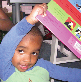 A child at Compass Clara House, a transitional-housing program for homeless families, enjoys a book in the common room.