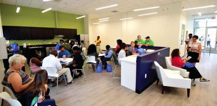 A newly-renovated Career Center can accommodate as many as 120 people a day for job training and employment counseling, and adults seeking to advance their educations can earn GEDs or get advice about college. Some 90 children attend after-school and summer programs geared just for them, and the campus includes Little Learners, an early learning center for the 60 youngest clients. A staggering array of other services is available, including meal programs, a clothing bank, AA meetings, HIV testing, parenting classes, financial literacy instruction, mental health treatment, and more.