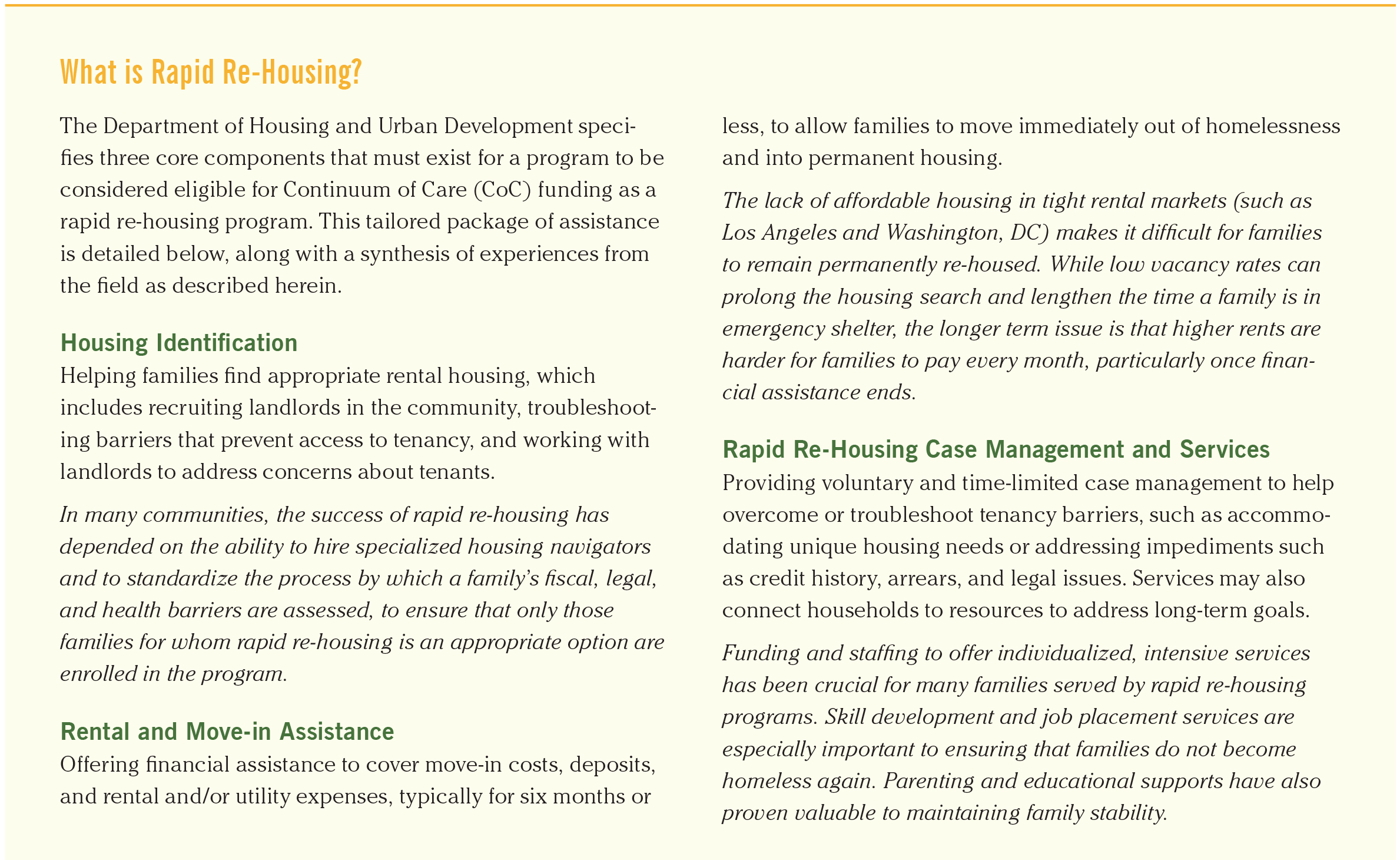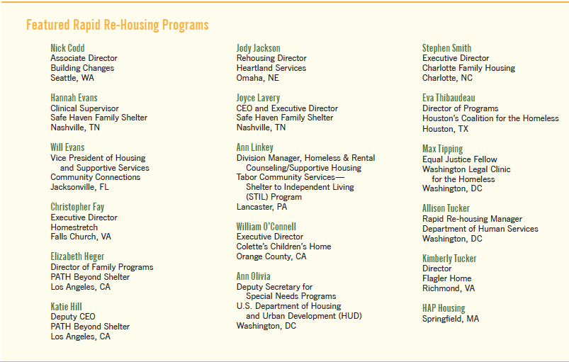 Fueled by a wave of federal funding from HUD, communities from coast to coast have implemented rapid re-housing programs—sometimes with enthusiasm, and at other times with trepidation.*