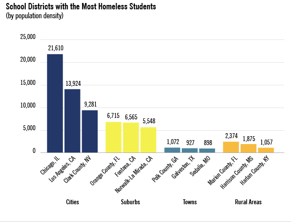 The sheer magnitude of the numbers seen in cities, however, can draw focus away from the fact that student homelessness is often even more pervasive in small towns and rural areas.