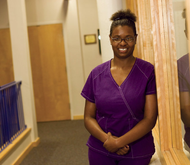 A young woman who became successfully employed through Cincinnati Works. The program places more than 600 people annually with a high rate of retention.
